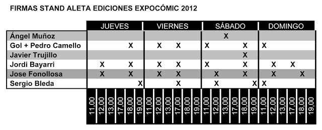 Y para acabar, recordaros que Jordi Bayarri firmará ejemplares de sus muchas obras en el stand de Aleta durante los 4 días de Expocómic 2012.