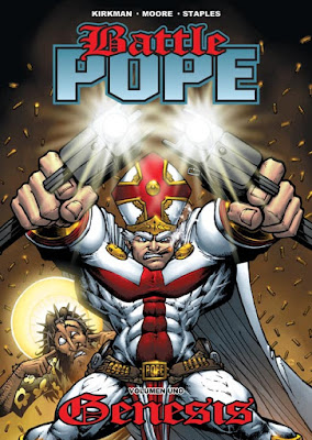Muchos ya sabéis que el cómic que propició el salto de Robert Kirkman a Image (donde crearía Invencible o Muertos Vivientes) fue una de las obras más irreverentes del mercado americano. ¡Que mejor fin de semana que este para comprar Battle Pope!