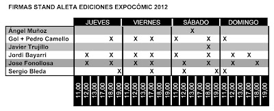 Os dejamos con el cuadro de las firmas de los autores que acudirán al stand de Aleta en el inminente Expocómic de Madrid. ¡Os esperamos!